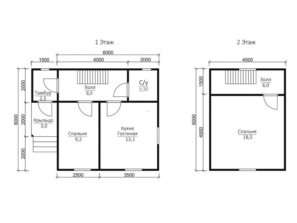 Сруб с мансардой: 1-ый этаж- 2,5 м. (18 венцов) 2-ой этаж (мансарда)- 2,4 м. Сруб в полтора и два этажа: 1-ый этаж 2,5 м ±4 см. (18 венцов) 2-ой этаж 2,5 м ±4 см. каркасные аттиковые стены (боковые) высотой 1,5 м. в полутораэтажном доме 2,5 м ±4 см (поднят брусом на 18 венцов) в двухэтажном доме. |